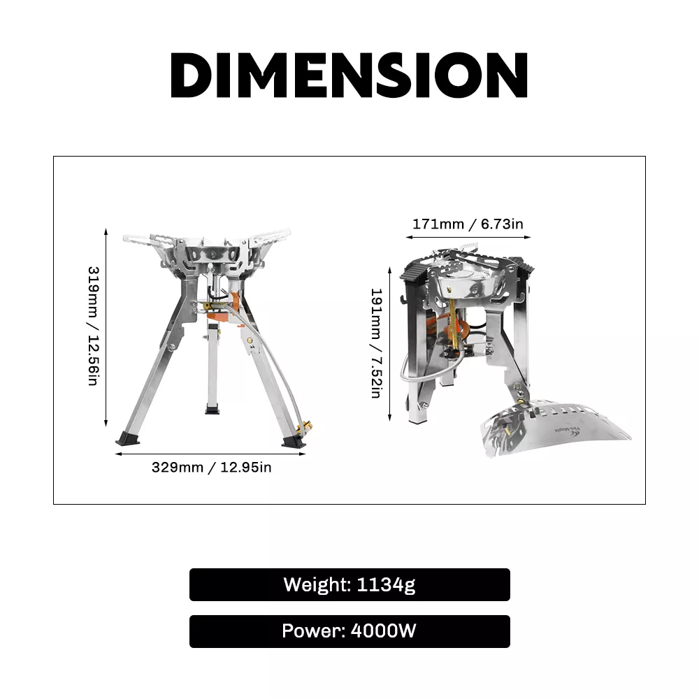 Prepare for the ultimate cooking experience in the great outdoors with this powerful camping gas stove. Built with high-intensity 4000W burners, this stove is designed to deliver a consistent, high-output flame that stands up to harsh weather and wind conditions. Whether you’re cooking at a high-altitude base camp or enjoying a cozy campsite, this rugged stove makes mealtime a breeze with rapid boiling times and robust flame control. Its compact foldable design and stainless steel build make it both convenient to carry and durable in any environment.