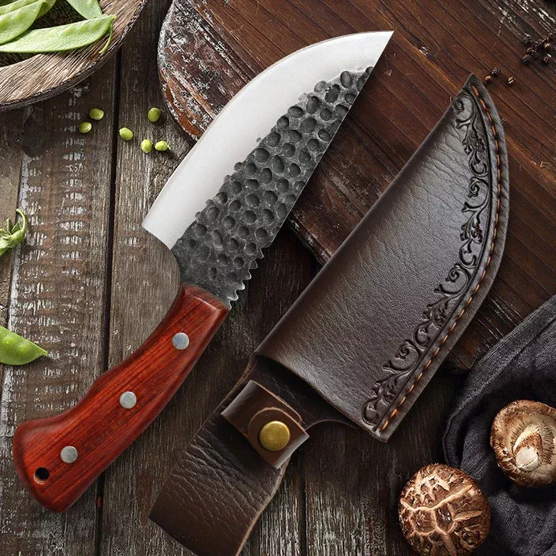 Experience the unmatched performance of our Professional High Carbon Stainless Steel Forged Chef Knife – a knife designed for versatility, strength, and precision. Crafted for chefs, butchers, and home cooks alike, this knife effortlessly handles meat, fish, fruits, and vegetables with unparalleled control. With a hand-forged 5Cr15Mov high carbon stainless steel blade, a comfortable rosewood handle, and an impressive 4mm thickness, this cleaver and boning knife is built to withstand rigorous use while delivering exceptional accuracy.