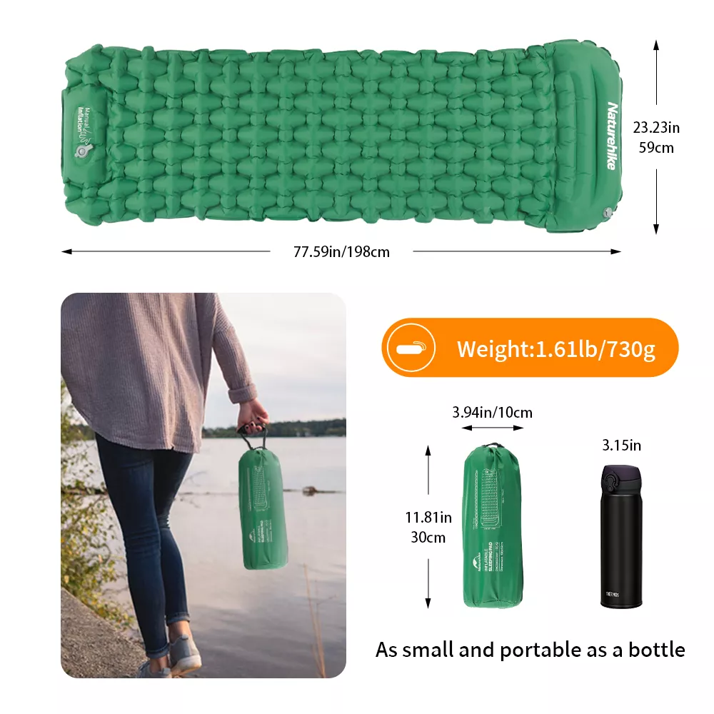 • Built-in Press Pump: No need for extra pumps—just press to inflate in under a minute.