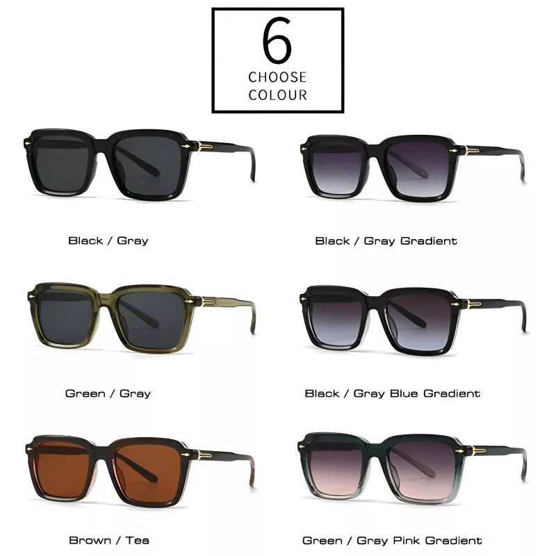 - Rivet Decoration: The chic rivet detailing on the temples adds a unique, edgy touch to the classic square design, giving these sunglasses a fashionable, high-end feel.